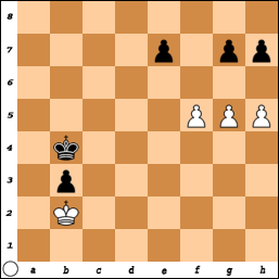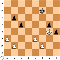 A Passed Pawn is a pawn that doesn't have any enemy pawns impeding its journey to the 8th rank. "Passed pawns must be pushed!" In the diagram, the pawns on e3 and h4 are the only passed pawns on the board. The h4 pawn is called a protected passed pawn. Observe how the White king can't capture the pawn on g5, since then the h4 protected passed pawn would win the race to the queening square.
