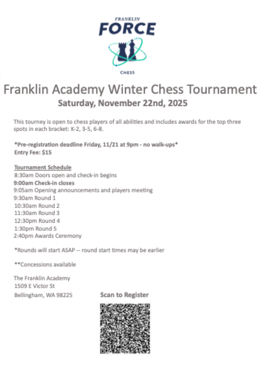 To stay informed on the latest tournament announcements and results, join the Whatcom Chess Announce emailing list. You can also like the NW Washington Scholastic Chess Facebook Page.