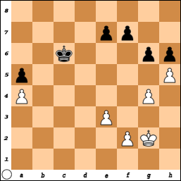 A Passed Pawn is a pawn that doesn't have any enemy pawns impeding its journey to the 8th rank. "Passed pawns must be pushed!" In the diagram, the pawns on e3 and h4 are the only passed pawns on the board. The h4 pawn is called a protected passed pawn. Observe how the White king can't capture the pawn on g5, since then the h4 protected passed pawn would win the race to the queening square.